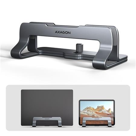 AXAGON STND-VG vertikální hliníkový stojan na notebook 10"-17.3" nastavitelný rozestup, šedý
