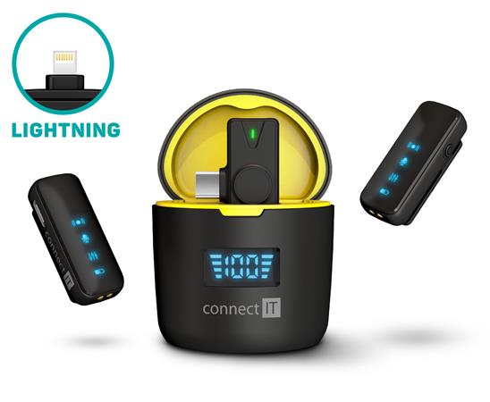 CONNECT IT Wireless mikrofon ClipMic Pro Lightning (2 ks + receiver) set ČERNÝ