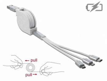 Delock Zatažitelný kabel USB 3 in 1 pro konektory osmipinový / Micro USB / USB Type-C™, bílý